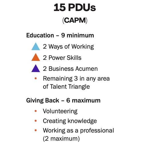 - À partir du 1er octobre, les titulaires de la CAPM devront gagner 15 PDUs sur trois ans et payer des frais de renouvellement.