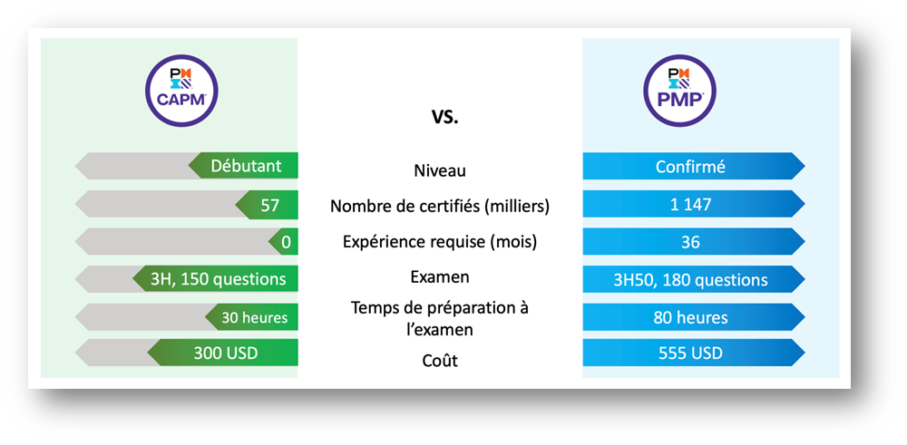 - CAPM : Destiné aux débutants ou à ceux débutant une carrière en gestion de projet.