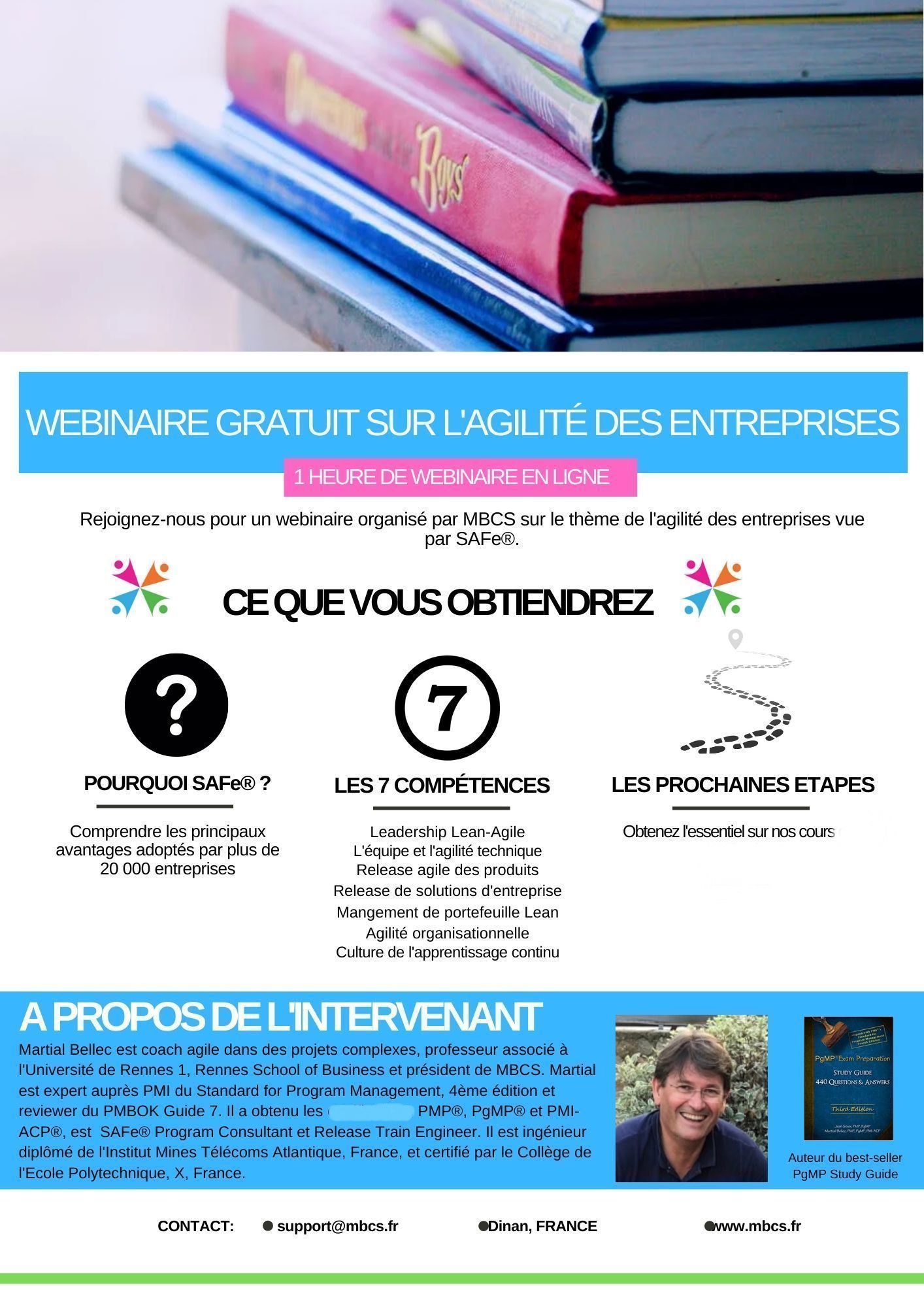 Fort de ses 25 ans d’expérience en gestion de projet, et Professeur en IAE et Grande Ecole auprès de centaines d'étudiants, Martial Bellec (seul formateur agile SAFe SPC, PMP, PgMP et PMI-ACP en France) a créé MBCS il y a 2 ans dans le but de rendre la formation en gestion de projet accessible à tous. Nos 5 formateurs sont extrêmement expérimentés et capables d'illustrer la théorie, à tout moment, au moyen des centaines de projets qu'ils ont dirigé , dans les secteurs du digital, de l'industrie (aéronautique, télécoms, ...) ou de la banque.