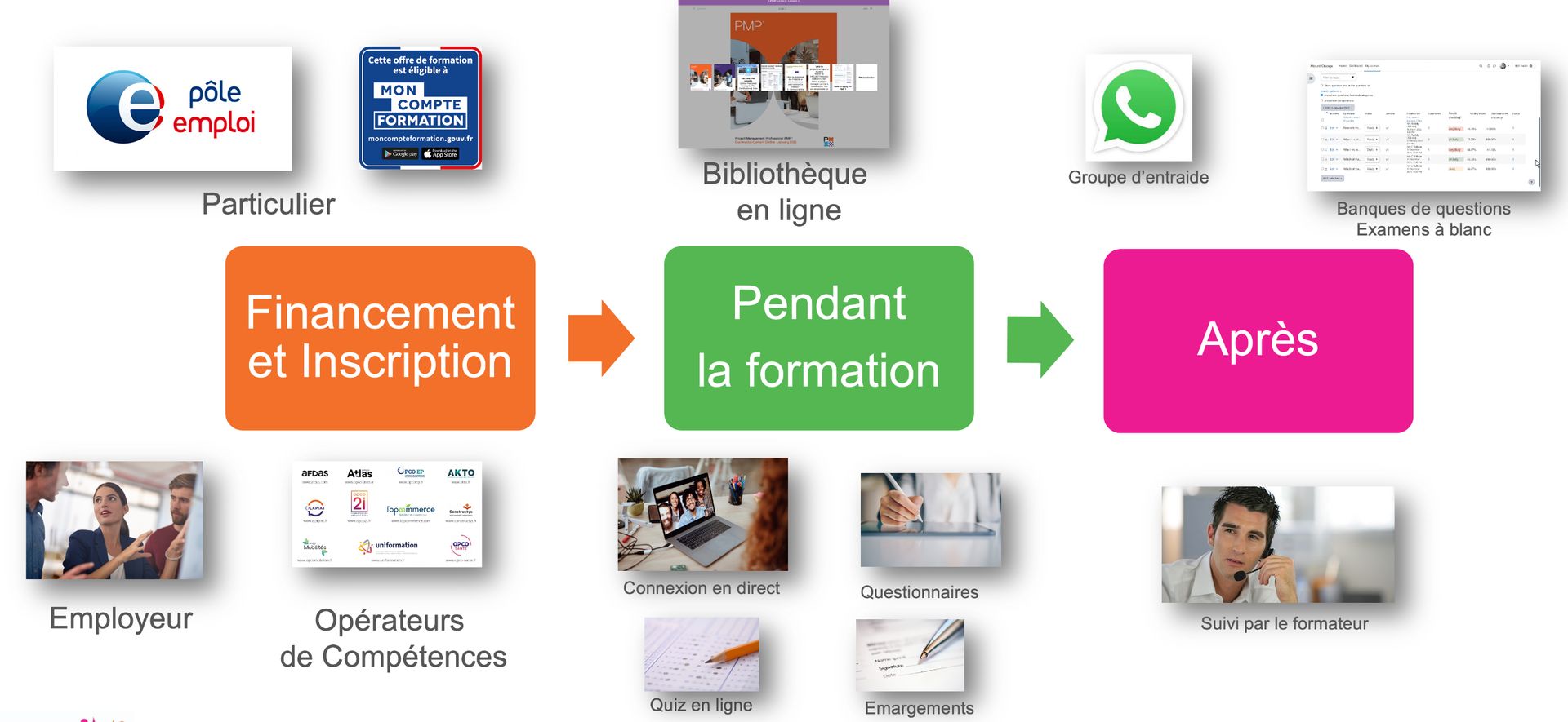 Nous recevons beaucoup de questions relatives à la démarche pour s’inscrire à nos formations ainsi que pour toutes les étapes pendant et après la formation.