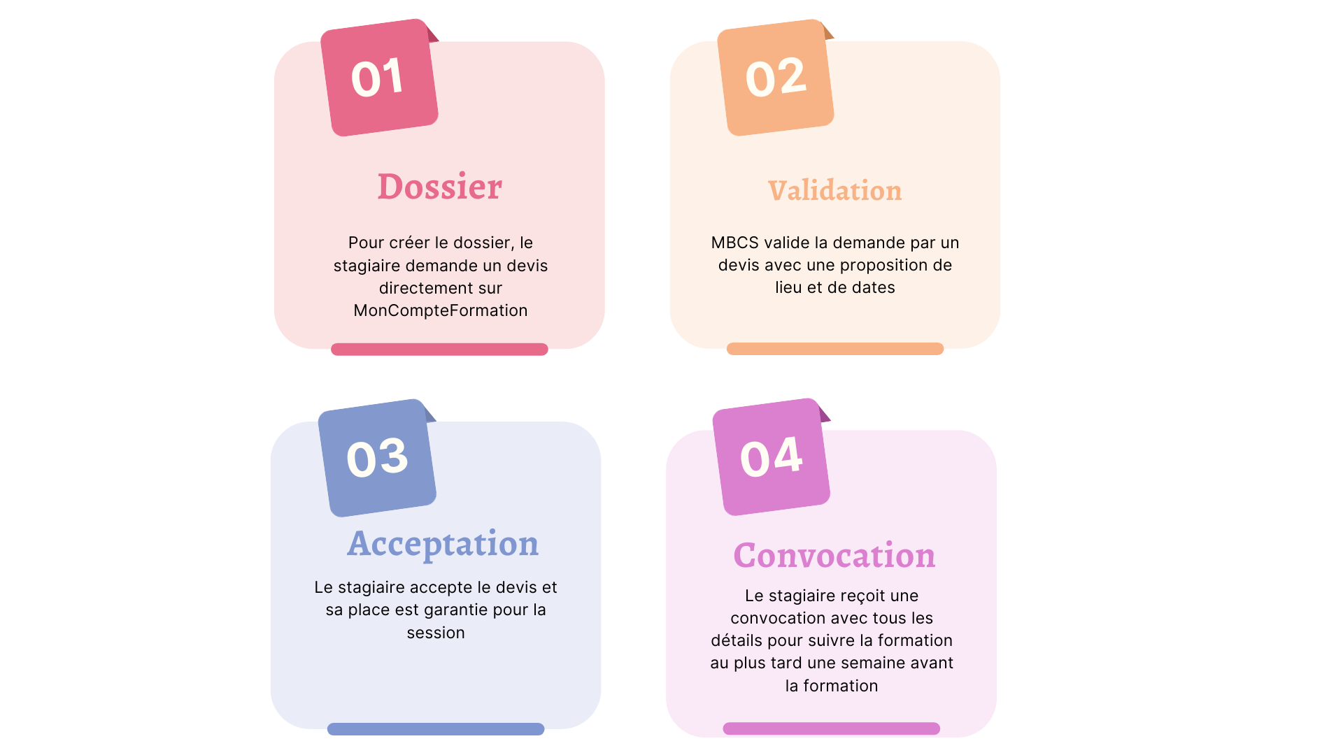 - MBCS valide la demande par un devis avec une proposition de lieu et de dates