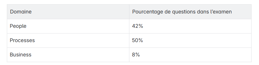 La spécification de l’examen appelée Examination Content Outline est emblématique de cette évolution. En effet, elle est représentative de l’ensemble des tâches qu’un chef de projet moderne, agile et hybride doit maîtriser au quotidien comme résumé dans ce tableau :