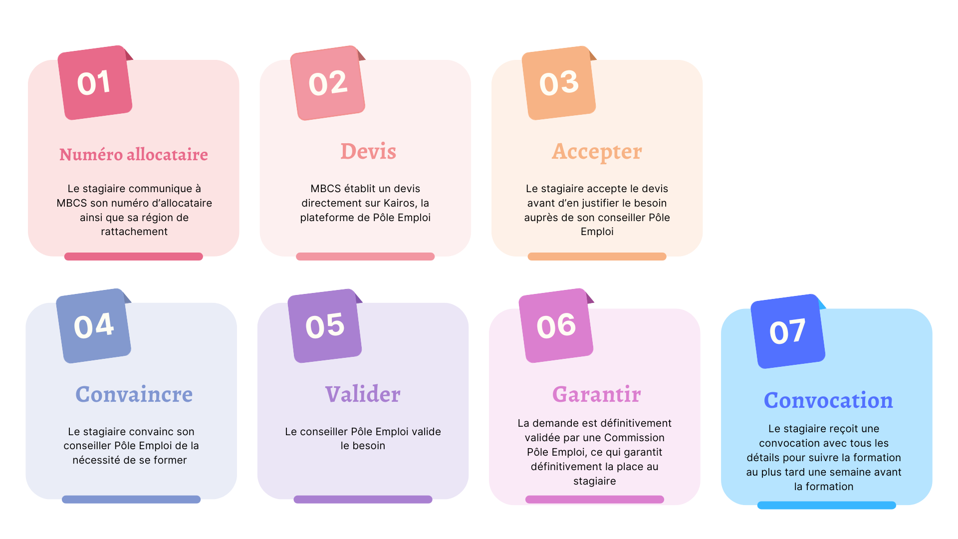- Le stagiaire communique à MBCS son numéro d’allocataire ainsi que sa région de rattachement